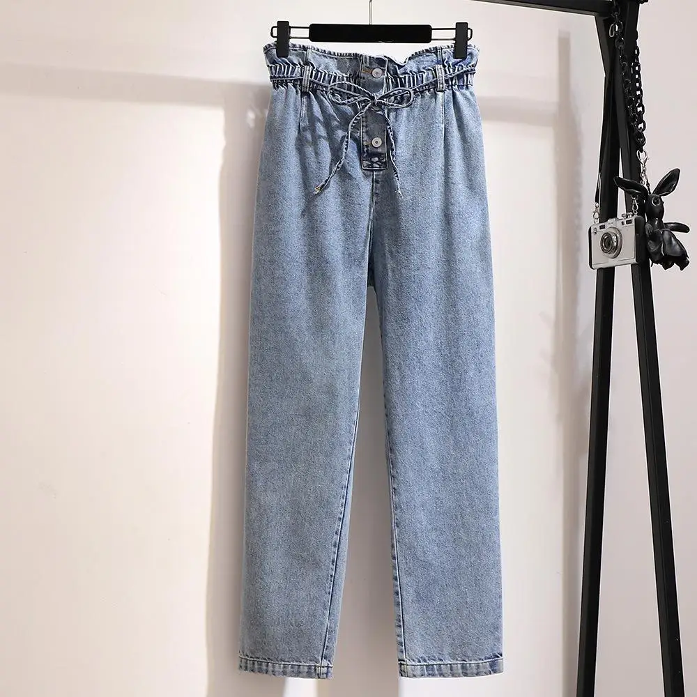 Related Product for and 5xl 6xl big size women's jeans elastic waist Harem pants loose lace-up high waist denim pants plus size women trouser fall