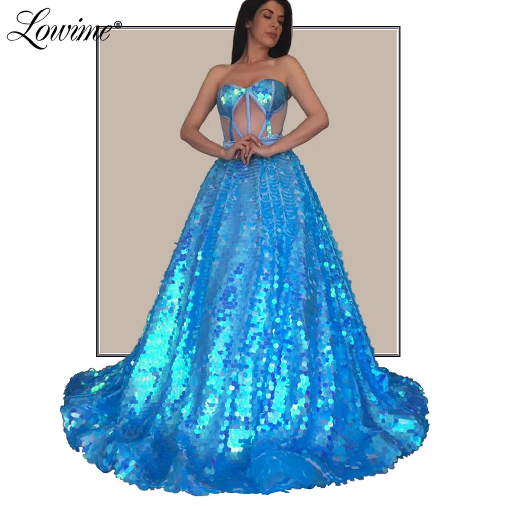 Blue Prom Dresses Vestido De Festa Illusion Sexy Party Dress Long Sequin Women Evening Gowns Custom Made 2020 Robe De Soiree