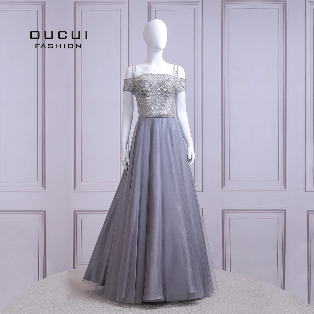 Buy Off The Shoulder A-line Tulle Sleeveless Ball Gown Sequins Long Beaded Prom Dresses Grey OL103505 and You will Save USD 0 or 0% %, Because You Just Pay for 329.00 not Full Price for 329.00