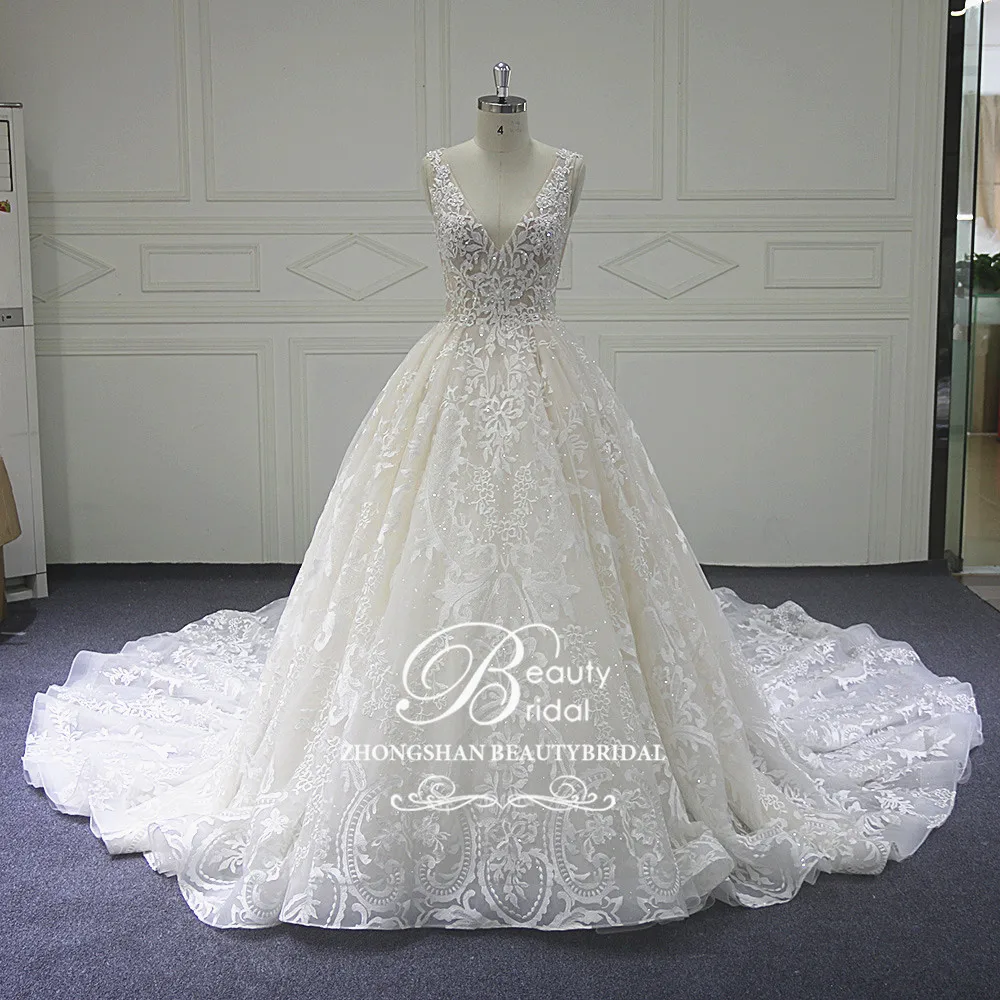 Addition Information of Luxury backless 2020 wedding dress custom made Chapel Train lace shoulders Vintage with Crystal bridal gown XF18016