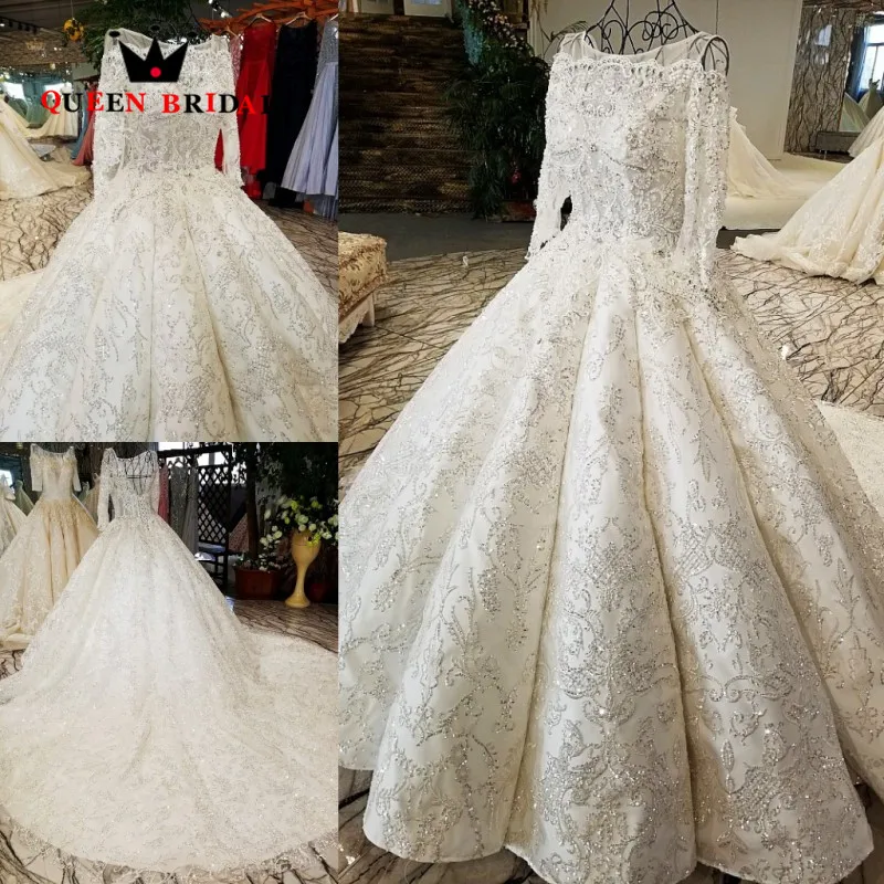 Buy New 2021 robe de mariee Ball Gown Full Sleeves Beaded Crystal vestido de noiva QUEEN BRIDAL Long Train Wedding Dresses WD105 and You will Save USD 0 or 0% %, Because You Just Pay for 932.00 not Full Price for 932.00