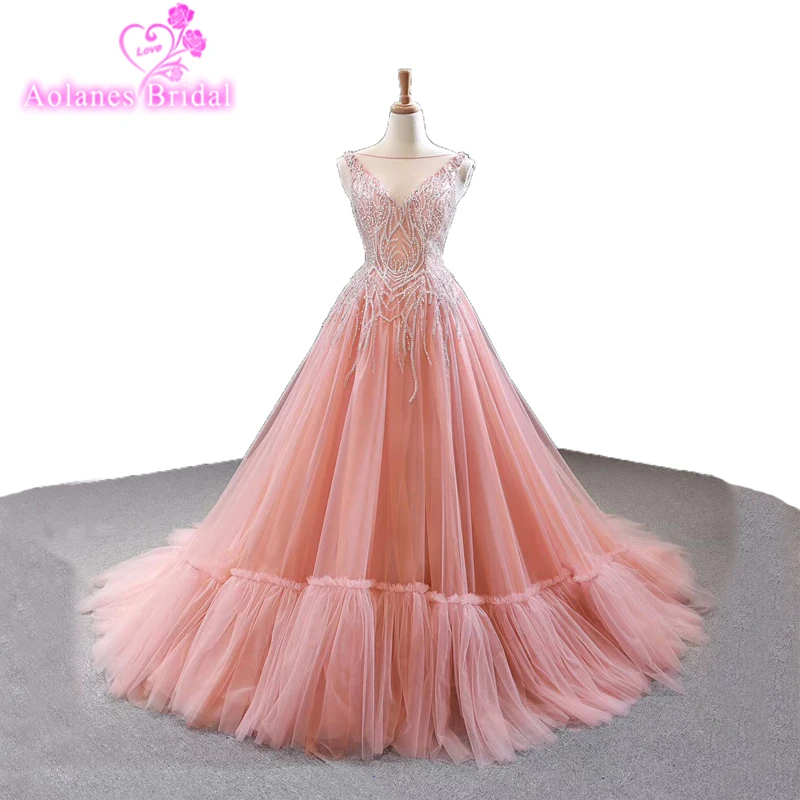 Related Product for and New Desin Beads Top Lace Up Back Puffy Tulle A Line Appliques Prom Dress 2019 New Design Evening Gown Pink Flowers Prom Dresses