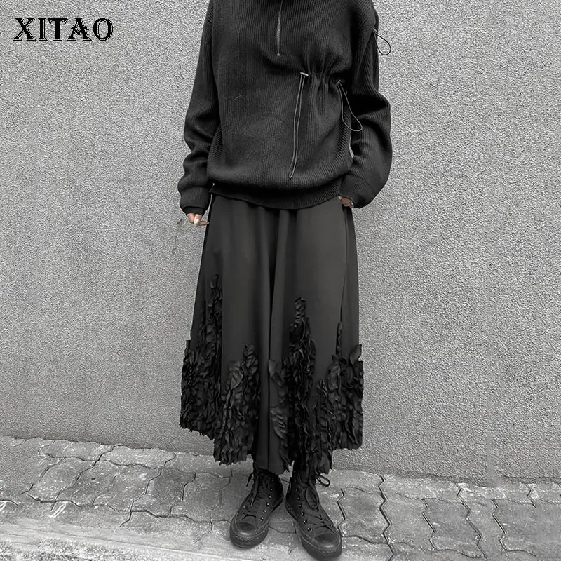 Addition Information of XITAO Patchwork Wrinkles Casual Pants Women Tide Fashion New Style Elastic Empire Waist Match All Wide Leg Loose Black DZL2640