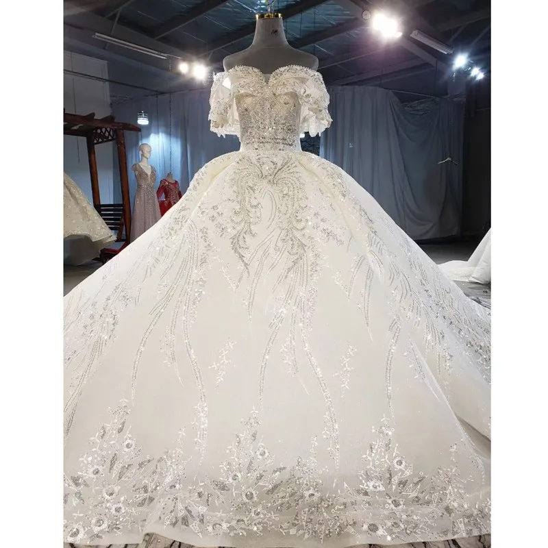 Related Product for and Champagne Luxury Crystals Lace Wedding Dress With Veil 2021 Sequined Beading Sweetheart Off The Shoulder Ball Gowns