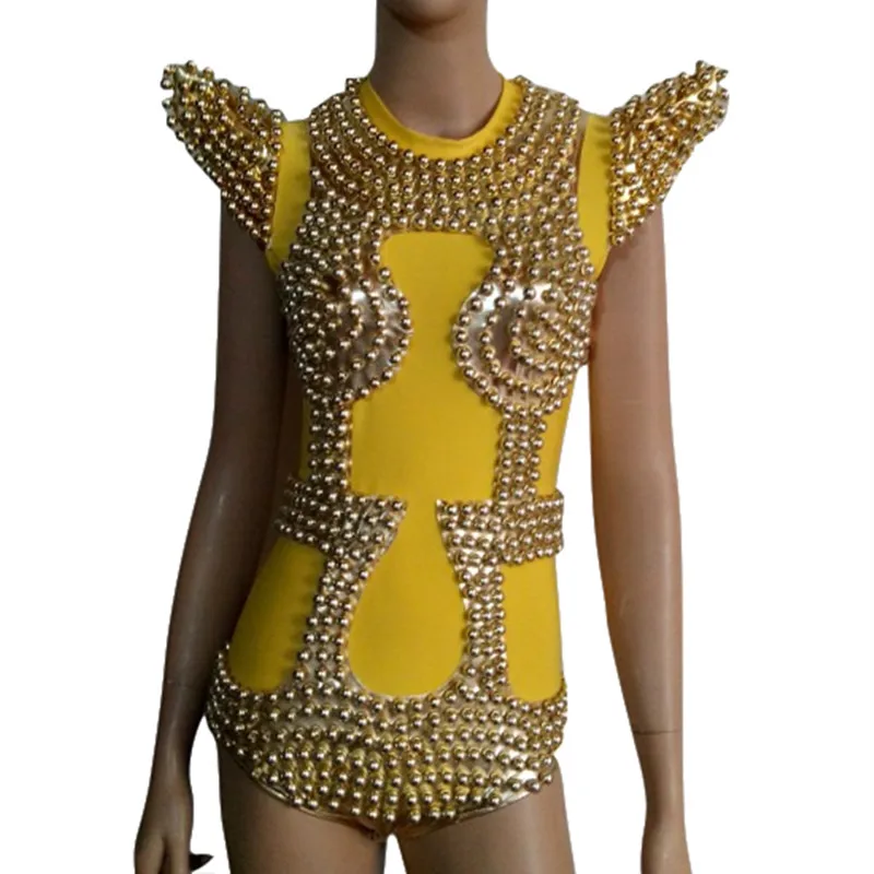 Handmade sewing Beading Bodysuit Occident Bar Female DJ singer Jazz stage Costume Leading dancer sexy Rock performance costumes