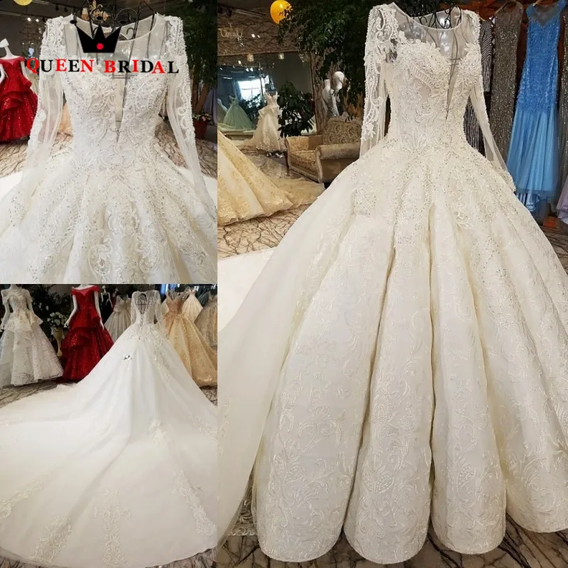 Real Sample Long Sleeves 2021 robe de mariee Ball Gown Lace Beaded vestido de noiva QUEEN BRIDAL Long Wedding Dresses WD101