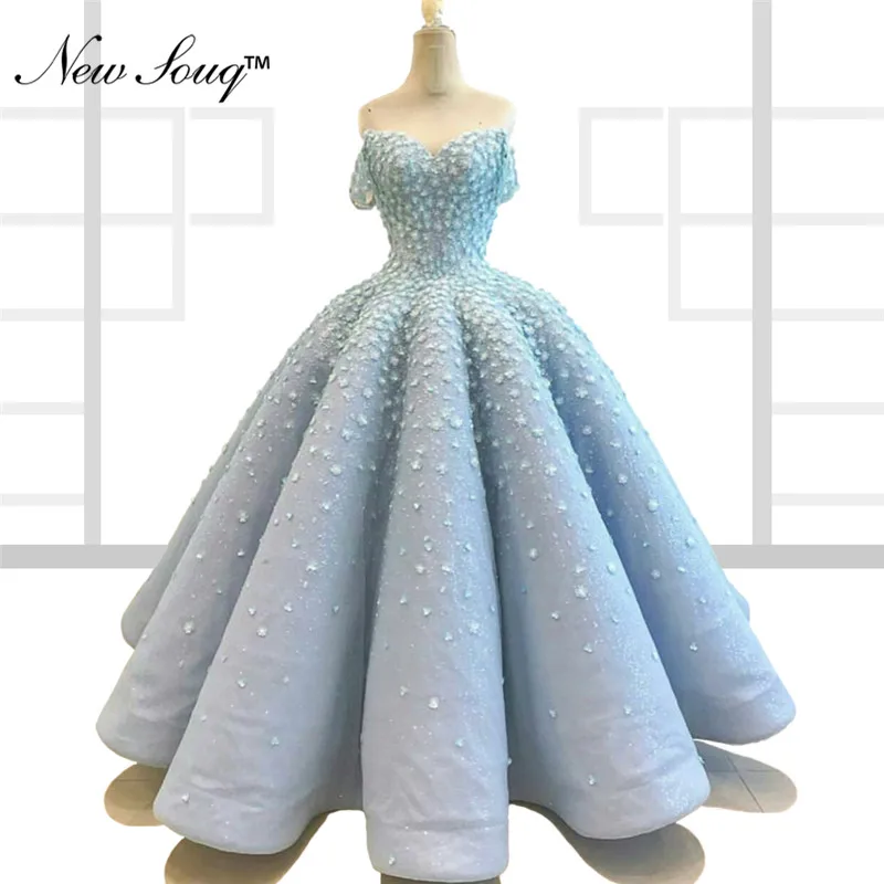 Light Blue Puffy Arabic Prom Dresses Formal Evening Gowns 2019 Abendkleider Caftan Pageant Dress Party Gowns Custom Made