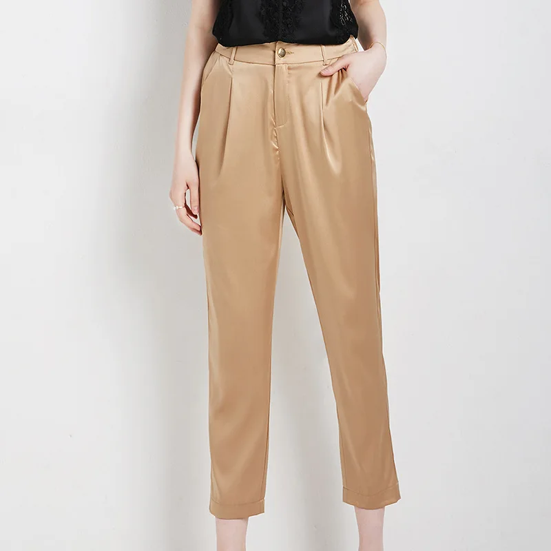 Addition Information of 100% Silk Harem Pants Female Korean Fashion Trousers for Women High Waist Pants Summer 2021 Pantalon Pour Femme Pph4173
