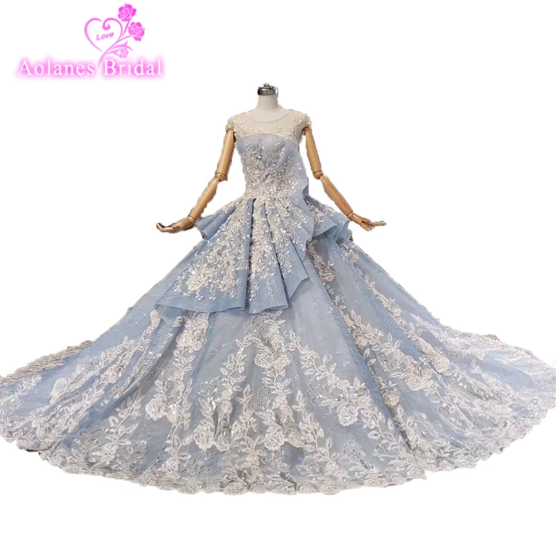 Related Product for and 2019 Fall Summer Lace Flowers Light Blue Wedding Dresses Crystals Lace Suit For Pregnant Bridal Pearls Puffy Bridal Ball Gowns
