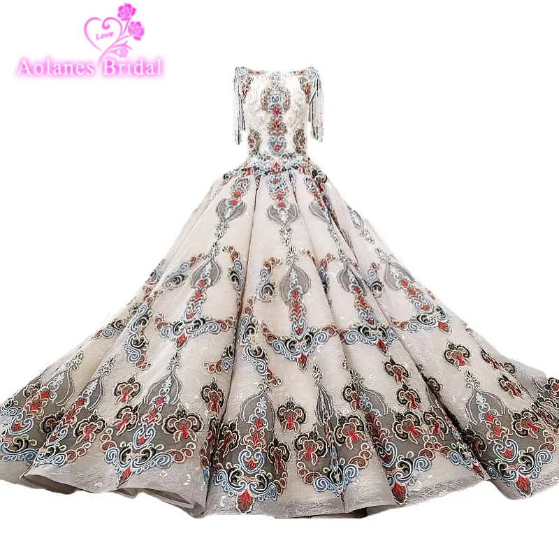 Addition Information of AOLANES 2018 Champagne Lace Tulle Vintag Wedding Dresses Sleeveless Royal Train Lace Up Ball Gown Cap Sleeve Vestido De Noiva