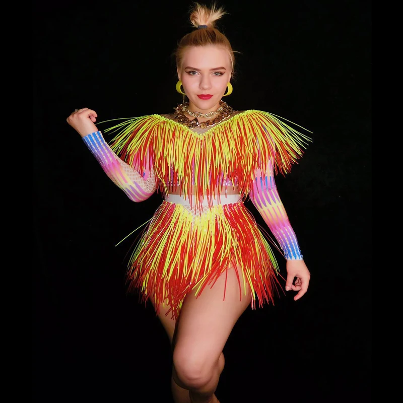 Buy Women New Multi-color Tassel Sexy Bodysuit Shiny Rhinestone Birthday Party Celebrate Outfit Nightclub Bar Singer Dance Bodysuit and You will Save USD 0 or 0% %, Because You Just Pay for 129.00 not Full Price for 129.00