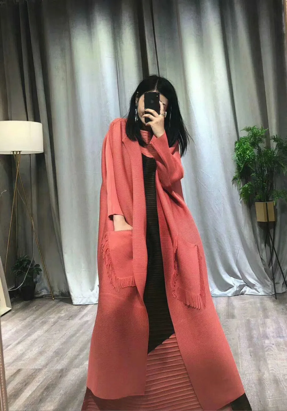 Miyake fold two-piece set pleated three quarter Windbreaker + large swing Contrast sleeveless dress IN STOCK
