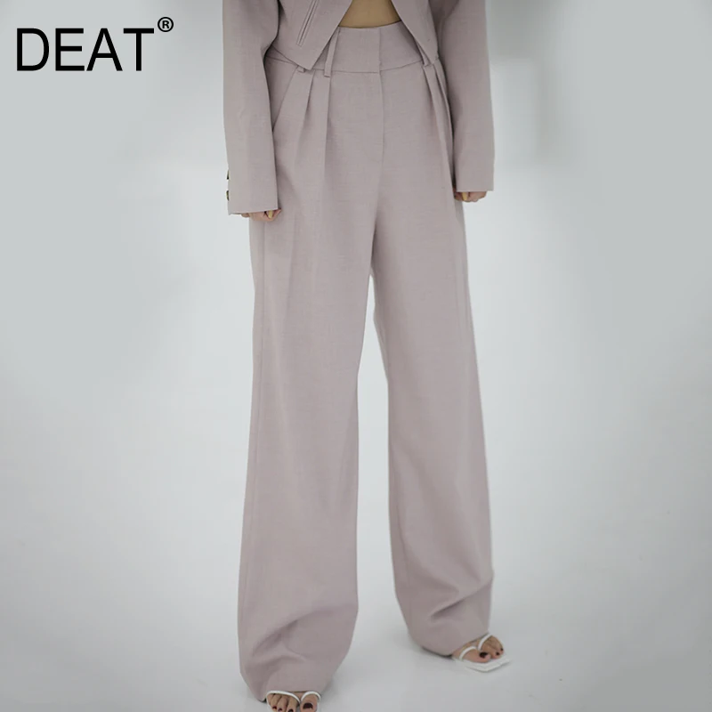 Buy DEAT Women Leg High Waist Trousers Loose Fit Pink Color Pants 2021 Fashion Spring New Straight High Quality Cloth 2021 1S717 and You will Save USD 0 or 0% %, Because You Just Pay for 79.60 not Full Price for 79.60