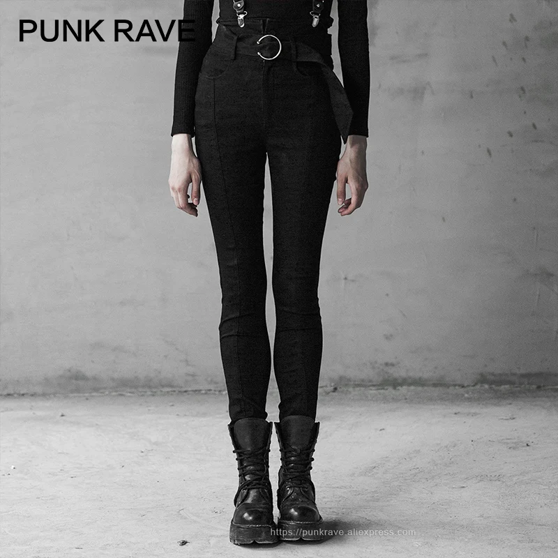 Related Product for and PUNK RAVE Women's Punk Contrast Color High Waist Strap Jeans Removable Shoulder Sling Casual Fashion Women Trousers