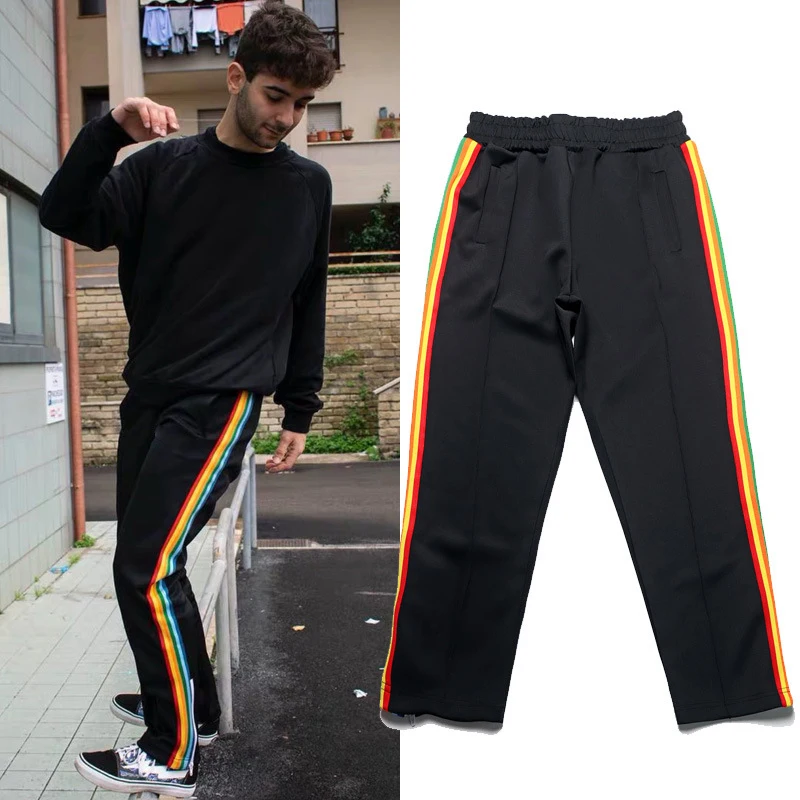Buy Striped Side Zipper Sports Y2k Pants Men 's Korean Fashion Casual Rainbow Trousers 2021 Summer Star Same Grunge Women Clothes and You will Save USD 0 or 0%, Because You Just Pay for 57.00 not Full Price for 57.00