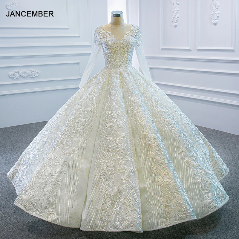 Buy J66812 Jancember Swolllen Wedding Dresses O-Neck Long Sleeves Applique Ball Gown Abiti Da Sposa Vestido Branco свадебные платья and You will Save USD 727.99 or 52% %, Becuase You Just Pay for 671.99 not Full Price for 1399.98