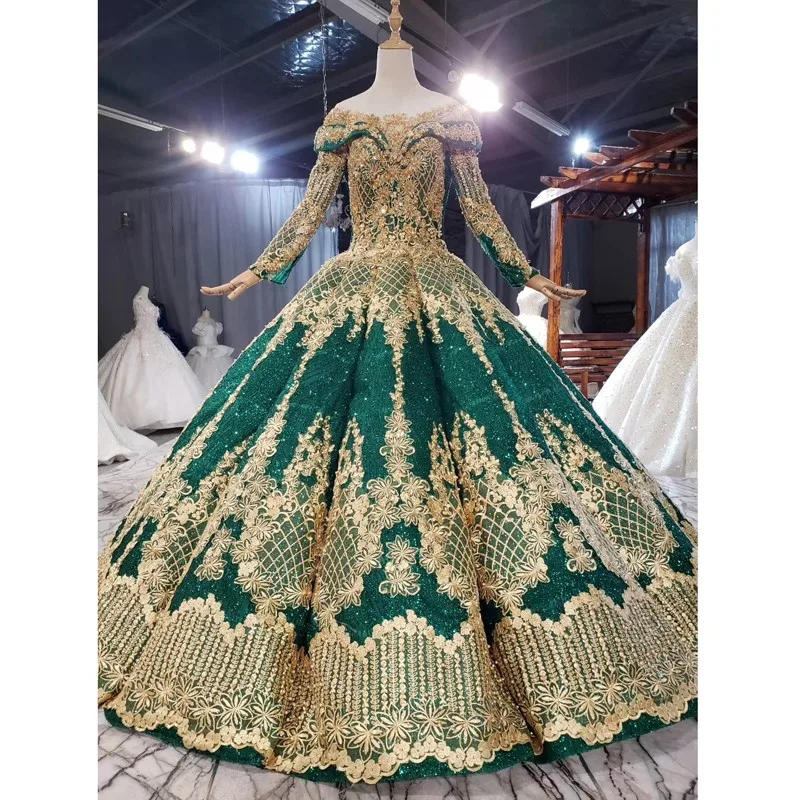Buy 2021 Lace Appliques Ball Gown Waves Bridal Gown Fashion Green Sparkle Gold Lace Bridal Dress Wedding Dresses and You will Save USD 0 or 0%, Because You Just Pay for 800.00 not Full Price for 800.00