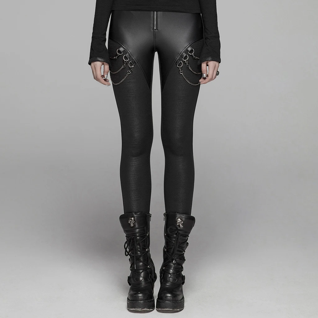 PUNK RAVE Women Gothic Faux Leather Skinny Leggings with Metal Chains Rock Pencil Pants Streetwear Casual Women Sexy Leggings
